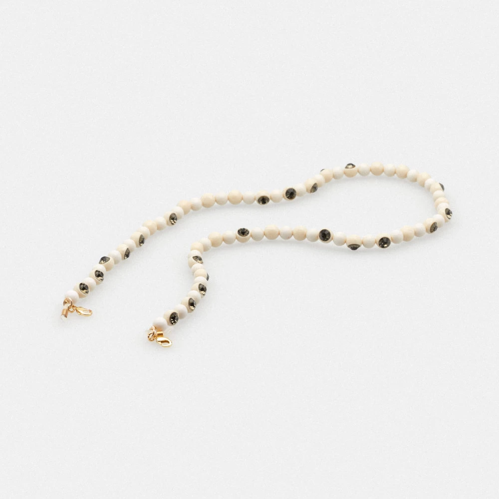 Luxury crafted chain of brown resin beads encrusted with beautiful rhinestones for added elegance and glamour. With gold-coloured double hook to hold the glasses, add security and comfort.
