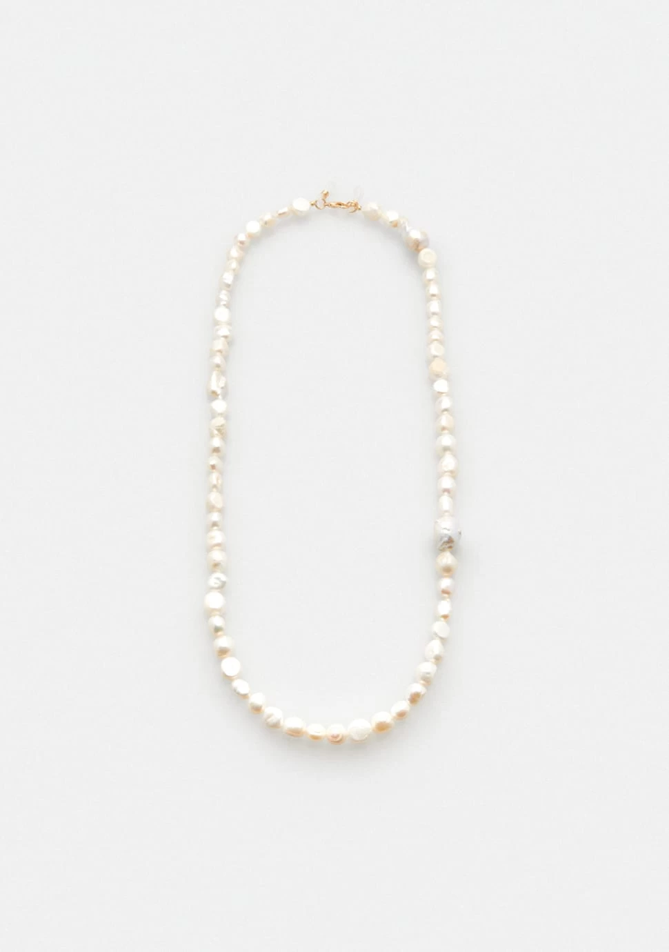 Natural pearl chain consisting of different sized pearls to give an organic look to any style. The white finish is elegant and timeless making this piece easy and comfortable to wear. With a double hook feature to hold any glasses of choice and added security.