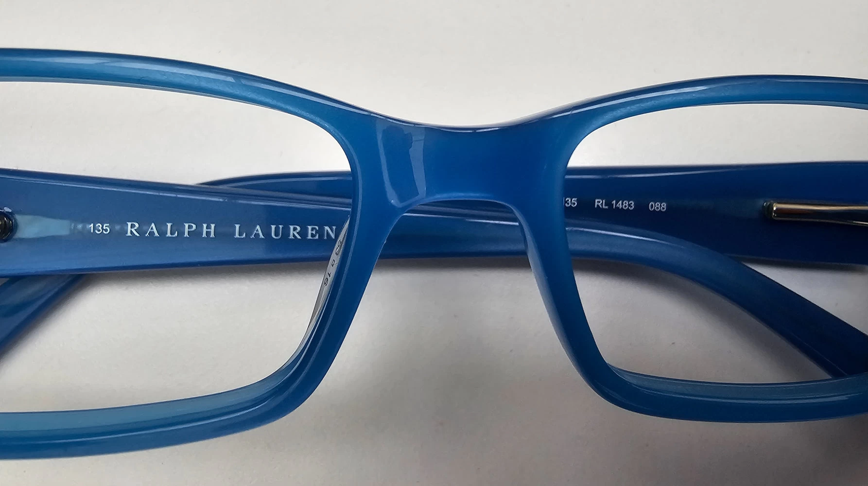 Small rectangle frame with ‘RL’ logo on metal plaques to temples. Would look great as reading glasses, although would work well for distance vision too