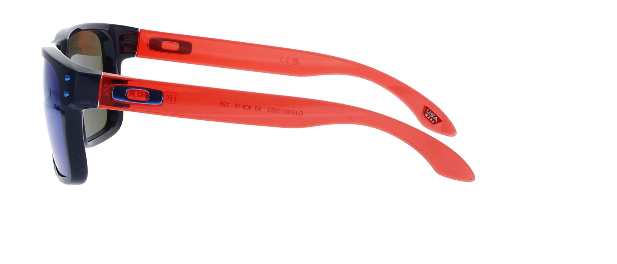 This full rimmed square shape frame comes in a polished navy and red colour with prizm sapphire lenses